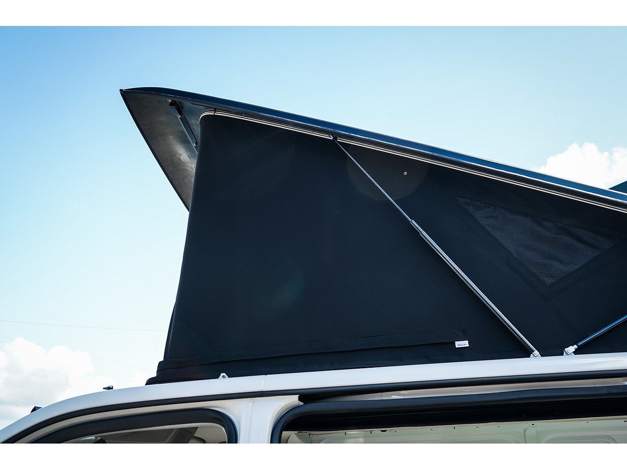 Finished in Candy White, this van has already been taken to the next level with a brand new gloss black stealth pop-top roof, giving it that factory-plus look while keeping things clean, modern, and understated.