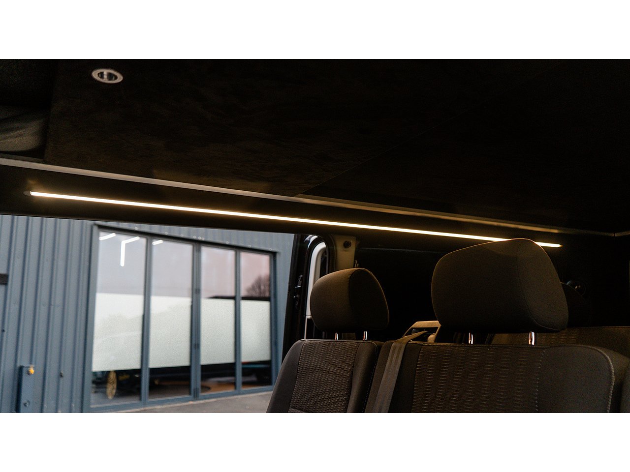 Step inside and it’s all about atmosphere. The cabin is clean, modern and surprisingly cosy, with LED interior light strips creating a warm, ambient glow when the sun goes down. Privacy curtains all round turn the back into your own secluded lounge or sleeping area, perfect for relaxing after a long drive. The rear seating is tidy and versatile, making this just as usable for family duties as it is for adventures.