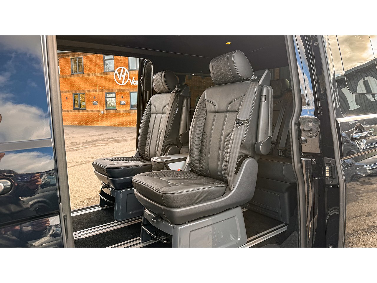 The smart, executive exterior leads way to a fully blacked out interior, with almost every Van Haven option ticked on the interior conversion, kitted out with the latest tech for work and entertainment.