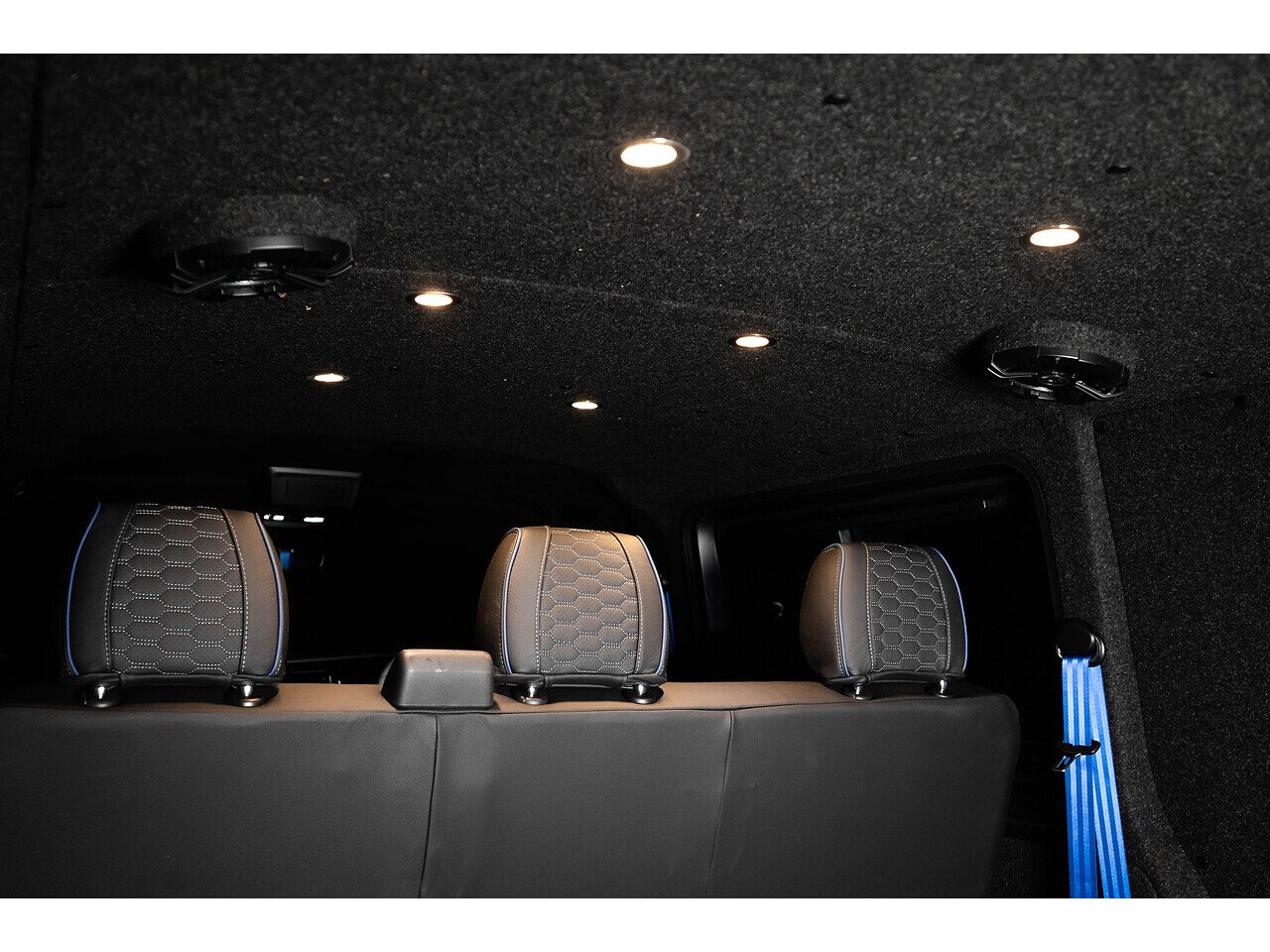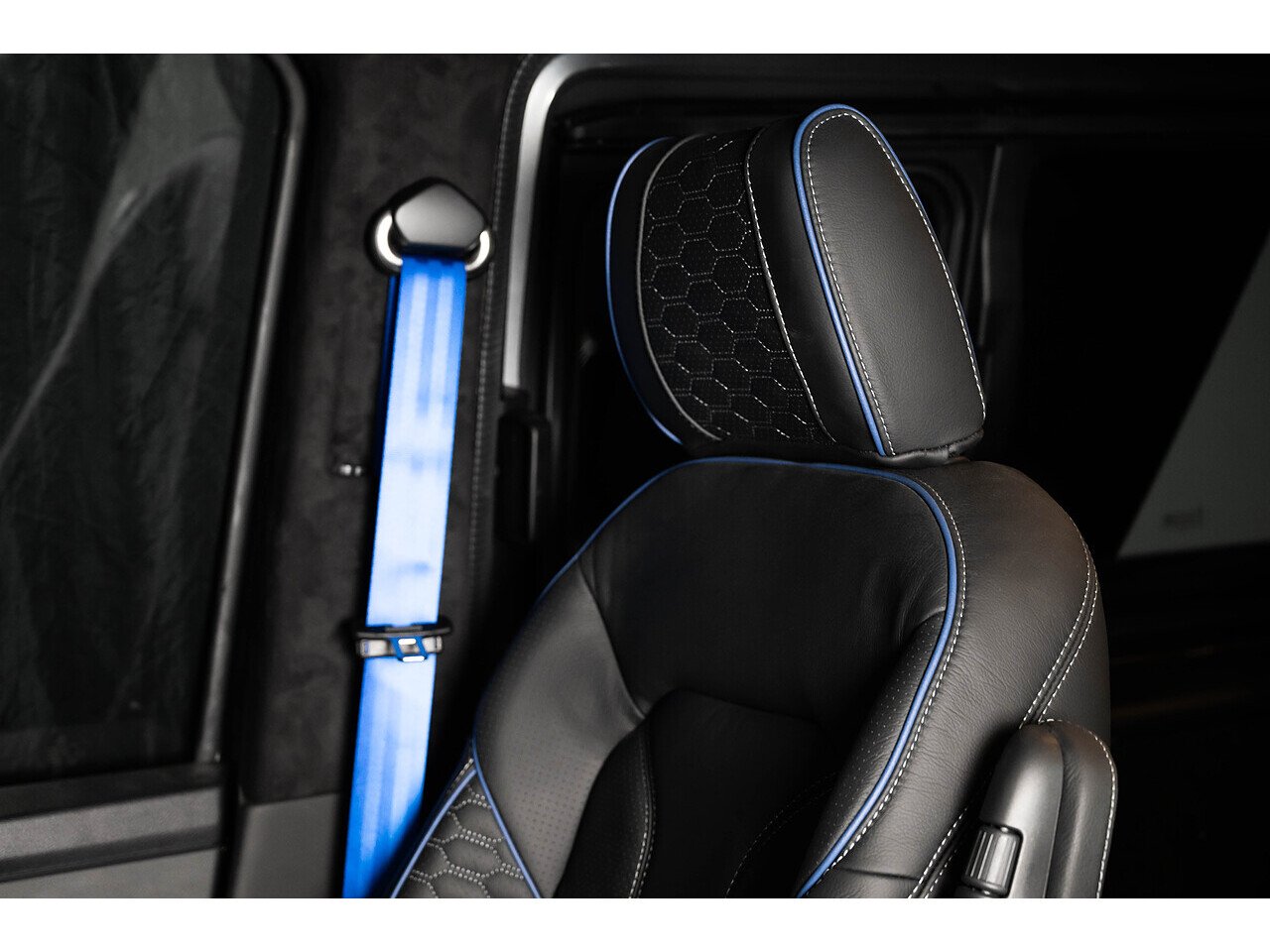 • Blue seatbelts
