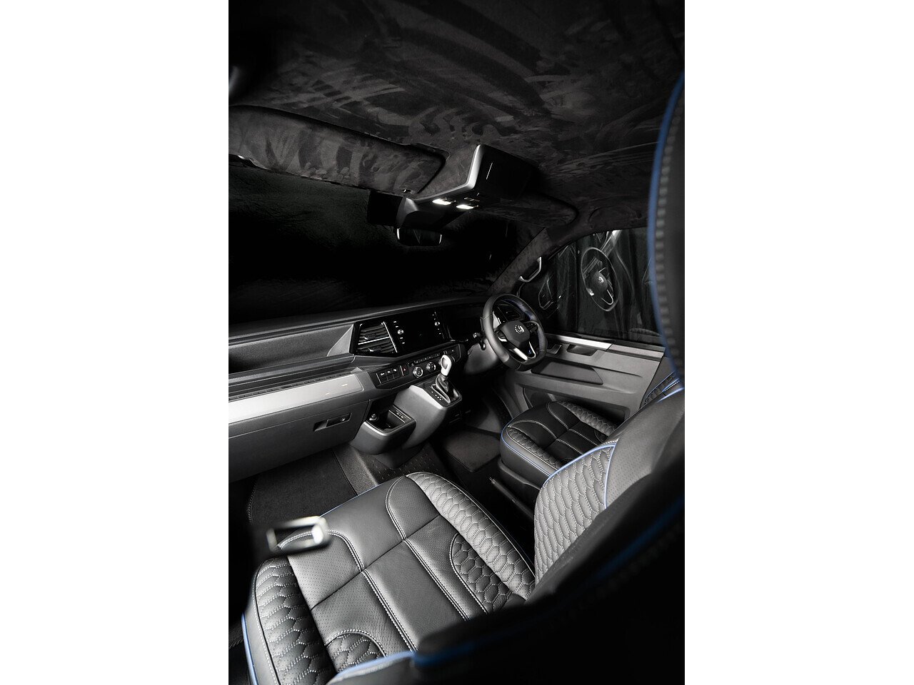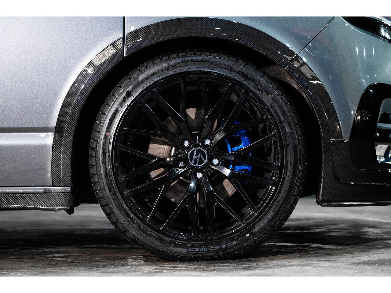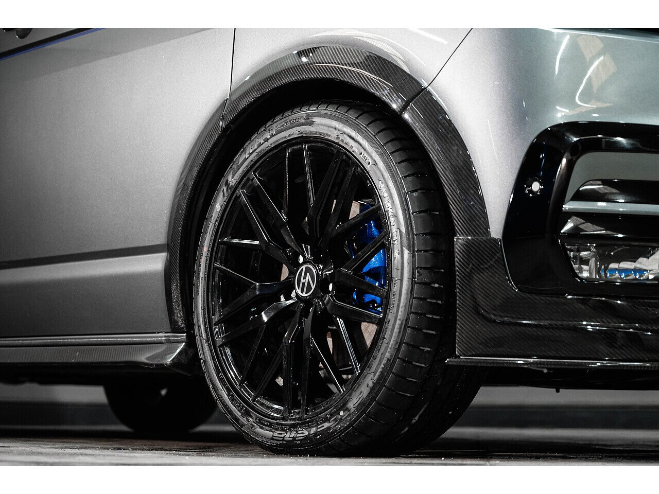 The exposed carbon against Indium grey coachwork really pops when the sun hits it, and the vans lowered stance commands attention wherever it goes. And the refinement continues into the interior that has been drastically sound deadened and punctuated with custom leather, alcantara lining and digital dashboard display.