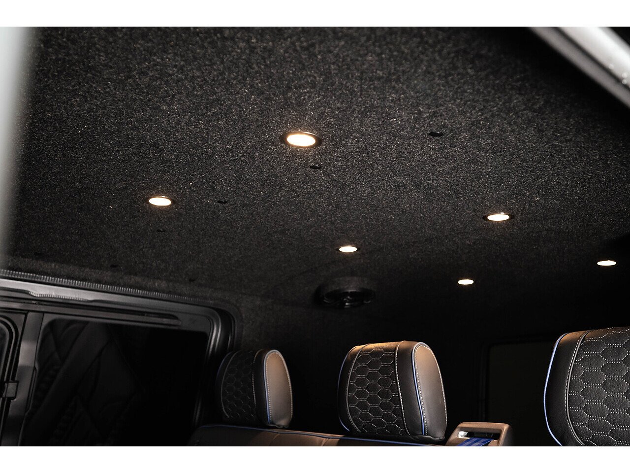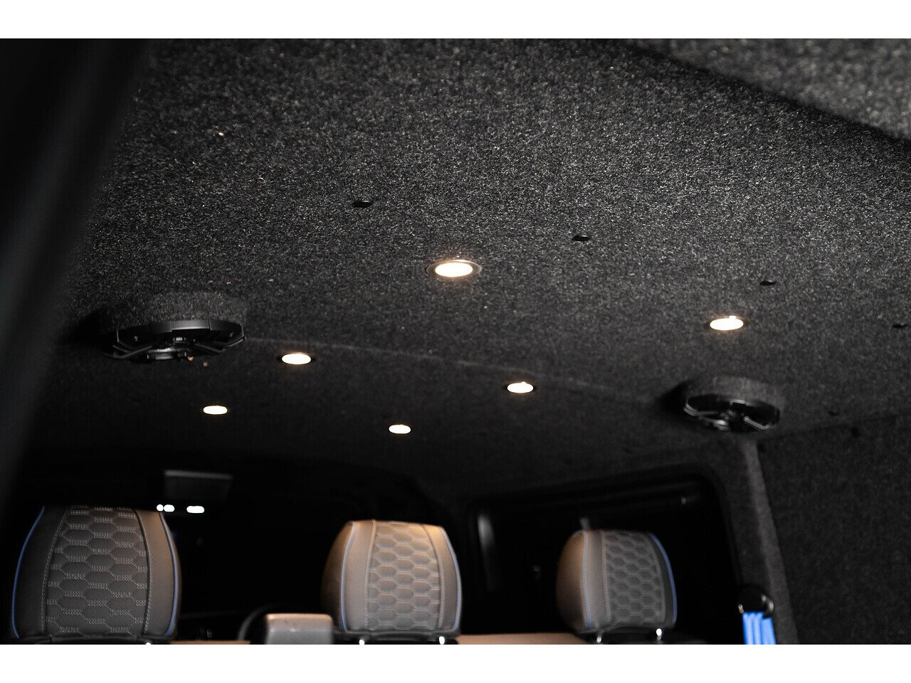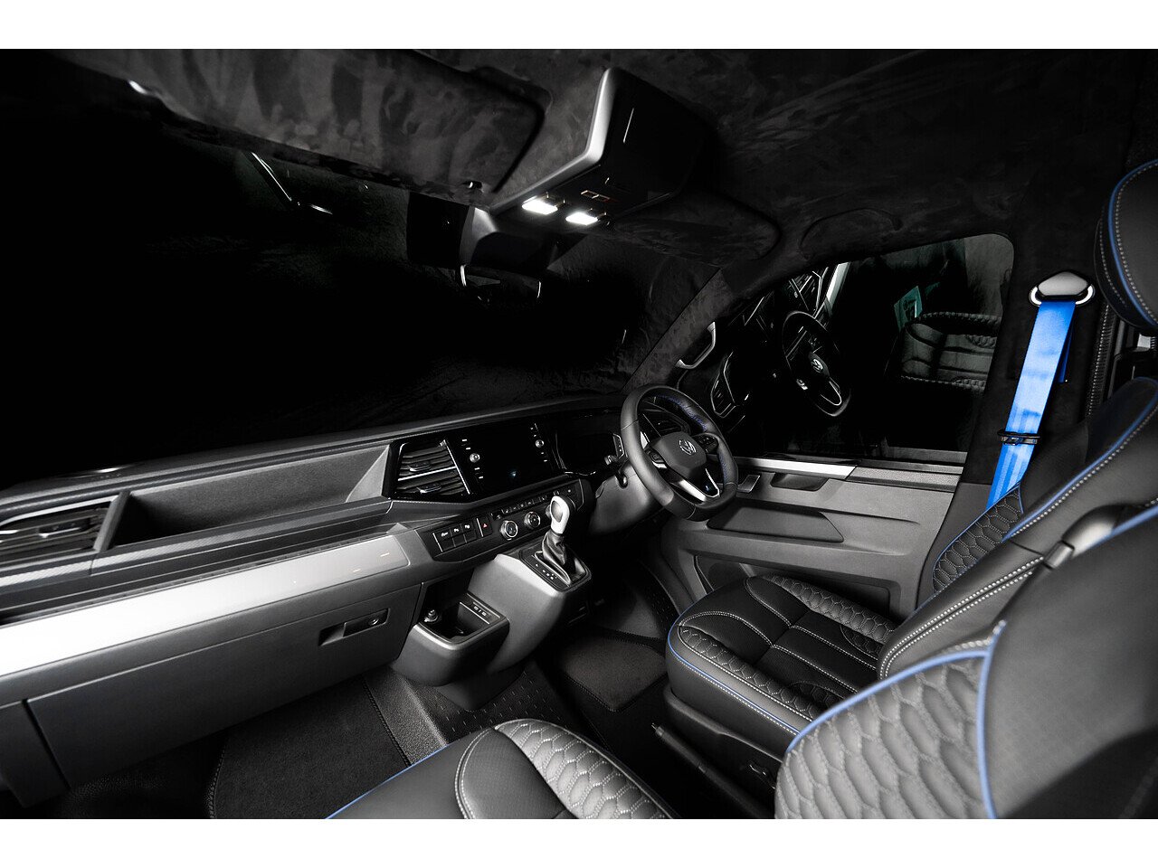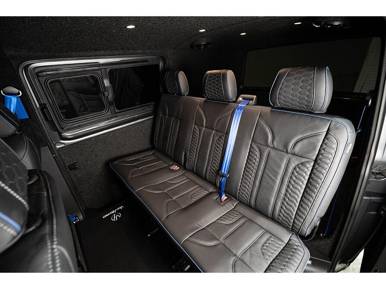 The exposed carbon against Indium grey coachwork really pops when the sun hits it, and the vans lowered stance commands attention wherever it goes. And the refinement continues into the interior that has been drastically sound deadened and punctuated with custom leather, alcantara lining and digital dashboard display.